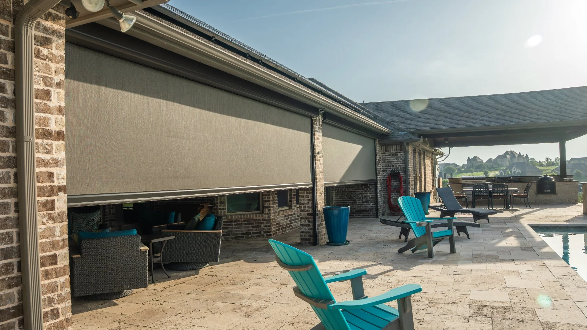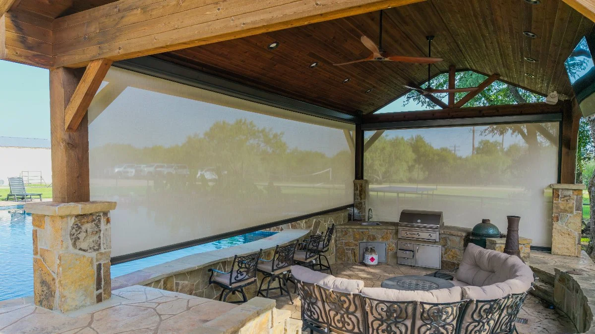 If you want to make your outdoor living space more enjoyable year-round, then look no further than our motorized screens at Jewel Pools & Outdoor Living. This service starts with a consultation to discuss your goals, desired use, and location. Different types of motorized screens are available to meet your specific needs, whether you want to keep out insects, block sunlight, or enhance privacy! What's more, all of our motorized screens come with a wireless remote control so you can easily raise or lower them with the press of a button.